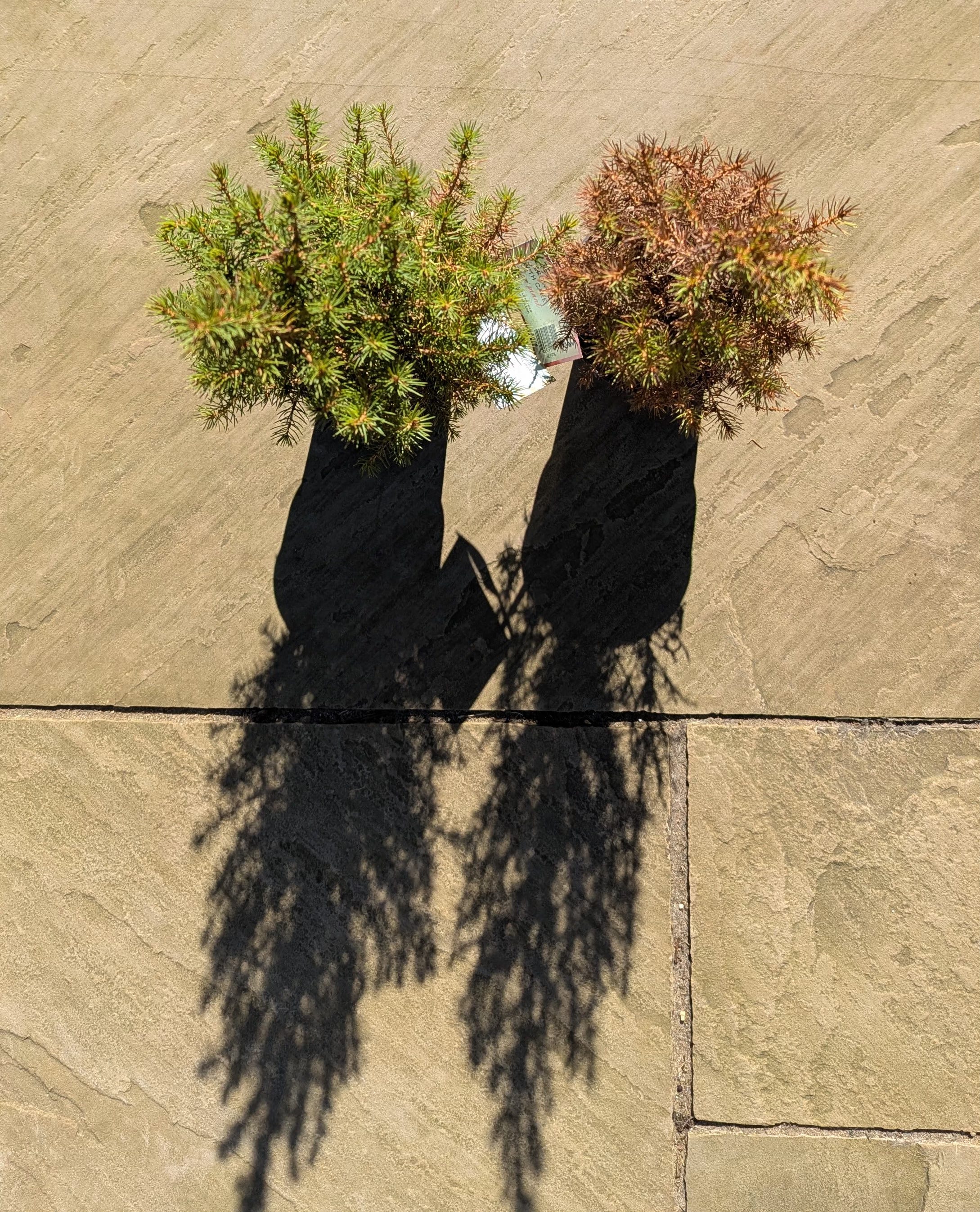 The plant in the pot by their feet has seen better days. It’s trying to survive but is now a an equal mix of green and brown. The plant is bone dry, and the gap between the plant’s soil ball and the pot is growing by the day.